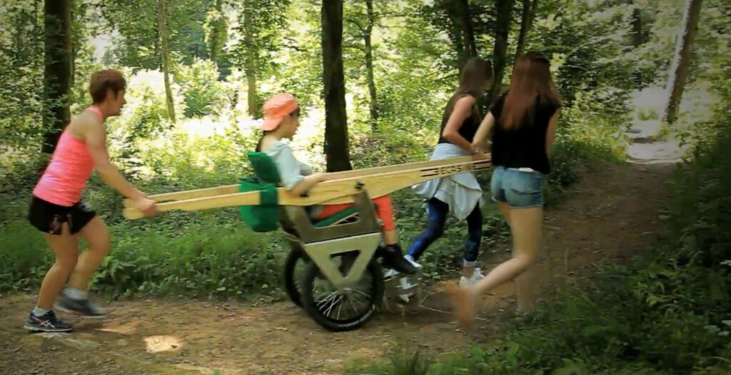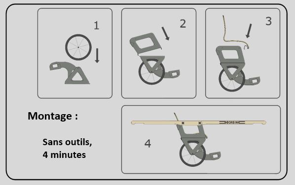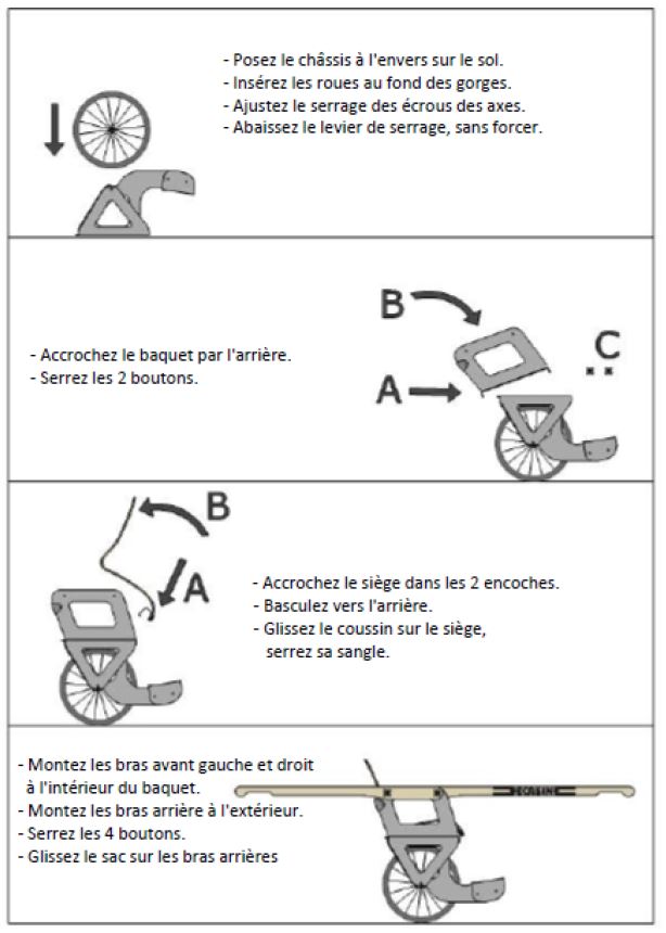 Les accompagnateurs sont responsables de l’équilibre, de la vitesse, du ralentissement progressif et de l’arrêt de la Becasine. En aucun cas la Becasine ne peut se renverser, ni le passager chuter.